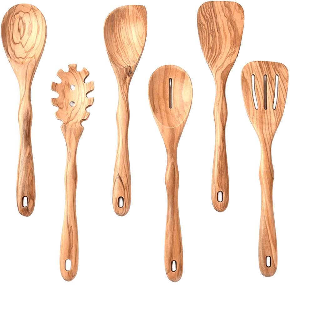 If you don’t get the Our Place cookware set above which comes with wooden utensils, you should definitely get some! My personal favorite has been olive wood, it’s less porous and therefor easier to clean