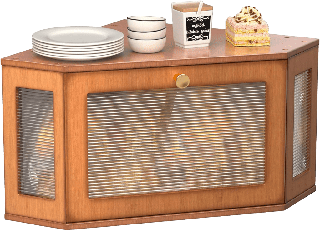 I immediately knew I made the right decision when I got this, it adds so much storage to my very storage-poor kitchen! I even use it for overflow from our one small pantry cabinet, so lots more than just bread can fit in here. But if you’re using it for exclusively bread, I’d say you could fit about 4 whole loaves in there!